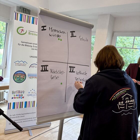 Oese – Mehr als 100 pädagogische Fachkräfte aus den neun Kitas des Kita-Verbandes Bremervörde-Zeven kamen am 9. Oktober in der Freizeit- und Begegnungsstätte Oese zusammen, um sich einen Tag lang intensiv mit dem Thema „Demokratie in der Kita“ zu beschäftigen. Schon beim Ankommen war die Atmosphäre lebhaft – und es wurde den Tag über gelacht, diskutiert und nachgedacht. Unter dem Motto der gleichnamigen landeskirchlichen Kampagne „Vielfalt leben, Hoffnung geben“ wurde deutlich: Demokratie ist nichts Abstraktes, sondern gelebter Alltag – auch schon mit den Jüngsten. Für das leibliche Wohl sorgte wie immer das Team der FuB Oese mit großartiger Bewirtung, was zusätzlich zu einer offenen und
