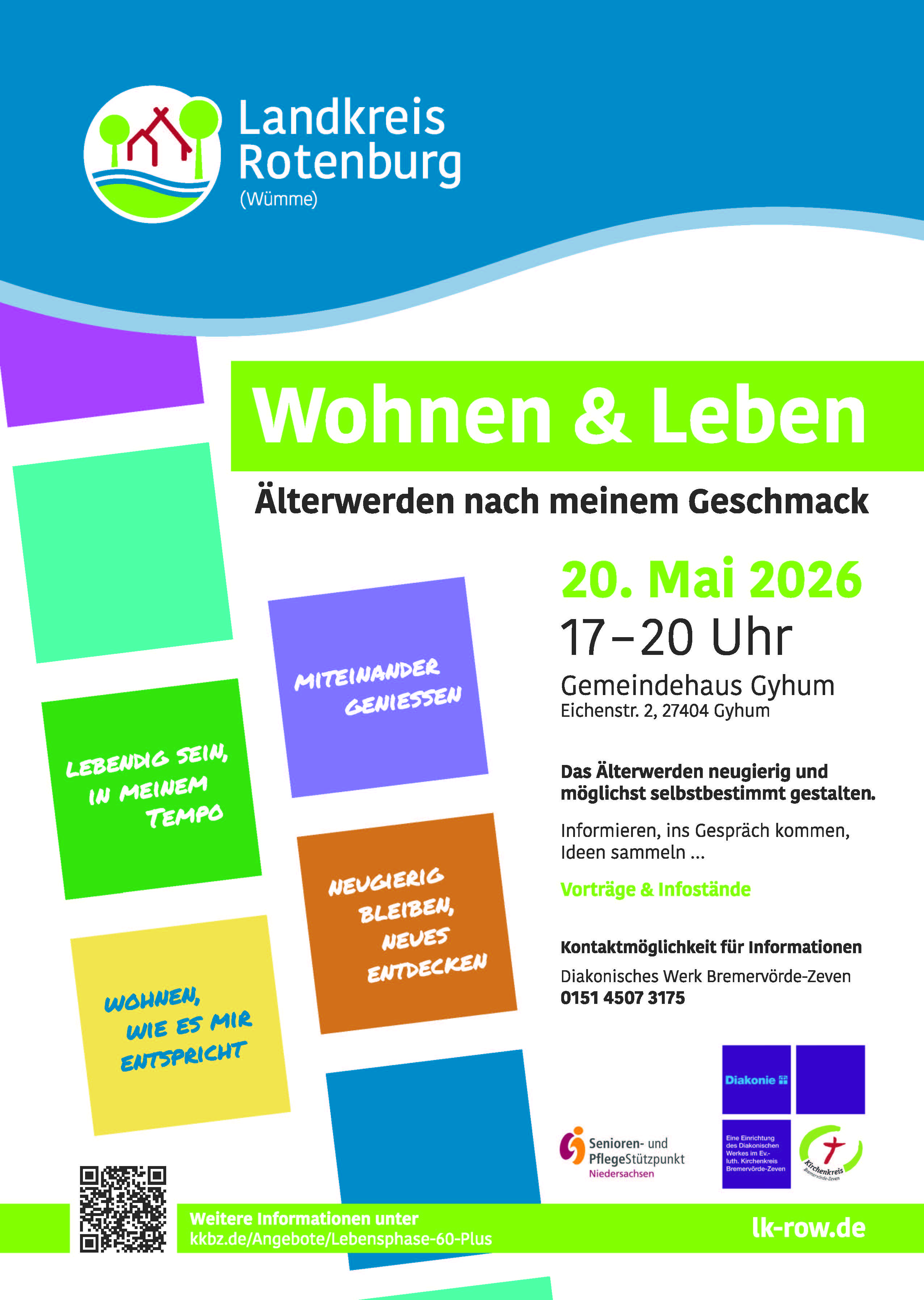 Am Mittwoch, 20. Mai 2026, von 17:00 bis 20:00 Uhr öffnet das Gemeindehaus in Gyhum seine Türen für einen offenen und inspirierenden Abend rund um das Thema Leben im Alter.